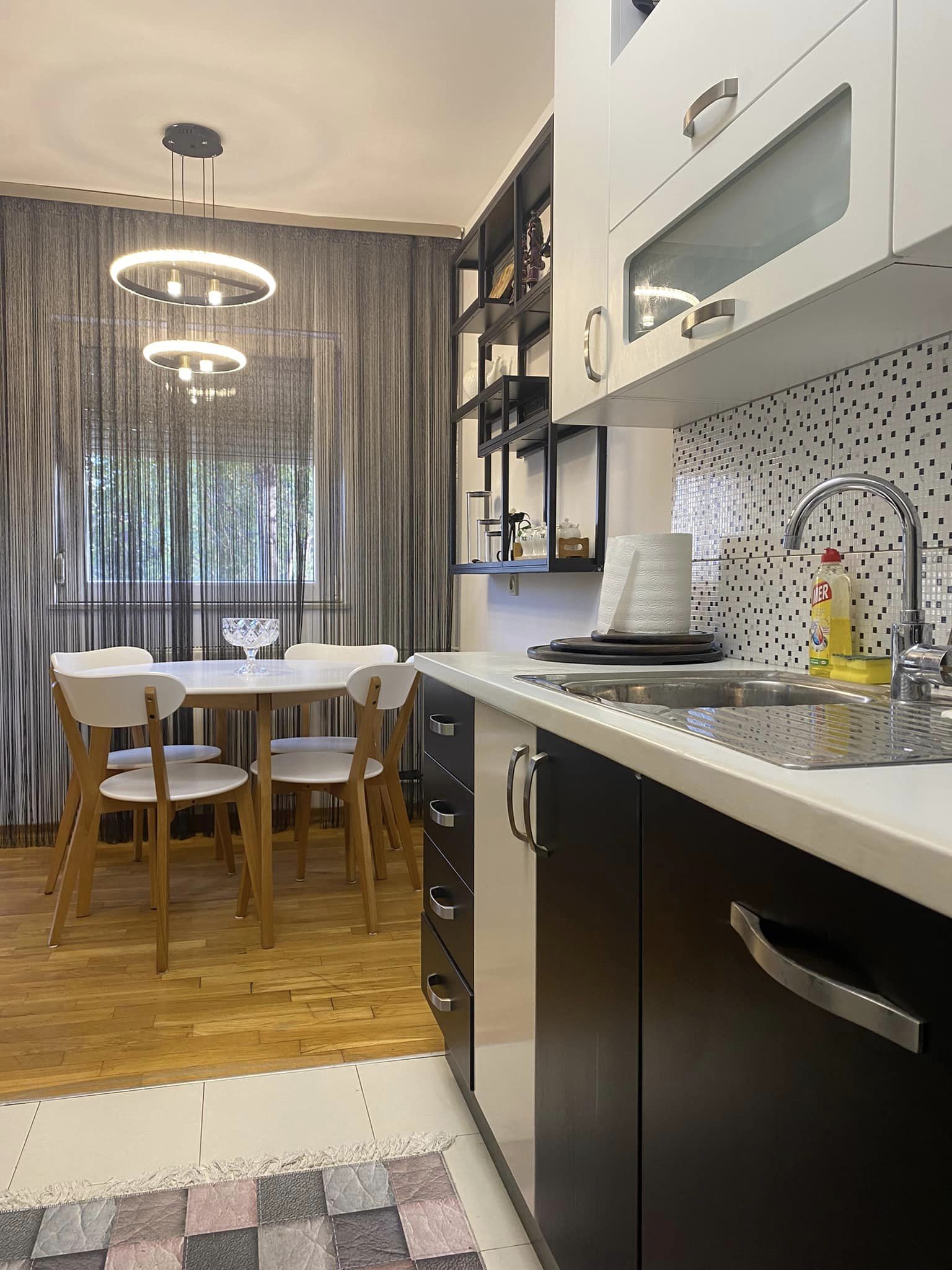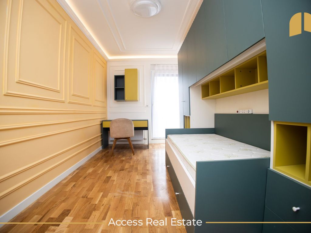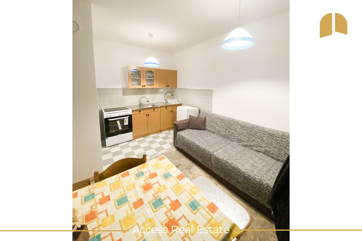 Përfshinë 53m² neto, e gjitha e renovuar së fundmi dhe përmban Sallonin, Kuzhina,1 Dhomë gjumi, Balloni me pamje shumë të bukur, 1 Banjo. E gjitha banesa ka nxemje shumë të mirë nga Termokosi. Qasje private në objekt (e rregulluar së fundmi nga NPB), parking të shumtë, qasje e lehtë në rrugët kryesore dhe lehtë e qasshme në cilendo pjesë të qytetit që dëshironi të shkoni. Afërsia me shkollën "Ismail Qemali", Kopshtet për fëmijë, Ambullanten, Trafikun Urban etj...
