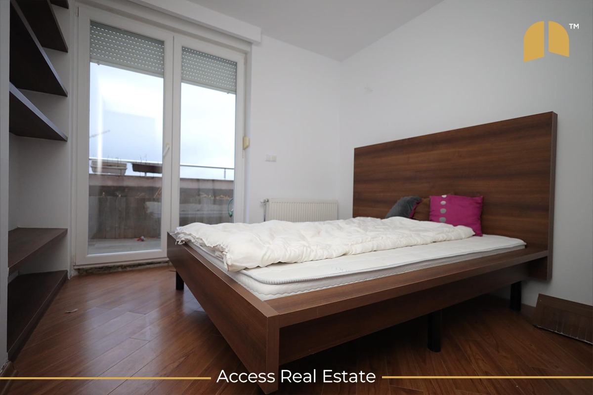 Penthouse gjendet në Rrugën C, në objektin e ndërtuar nga kompania Tregtia, afër Positive Bar. Ka sipërfaqe prej 80m² të shfrytëzueshme dhe ndodhet në katin e 11- të. Sistemin e ngrohjes e ka me energji elektrike.